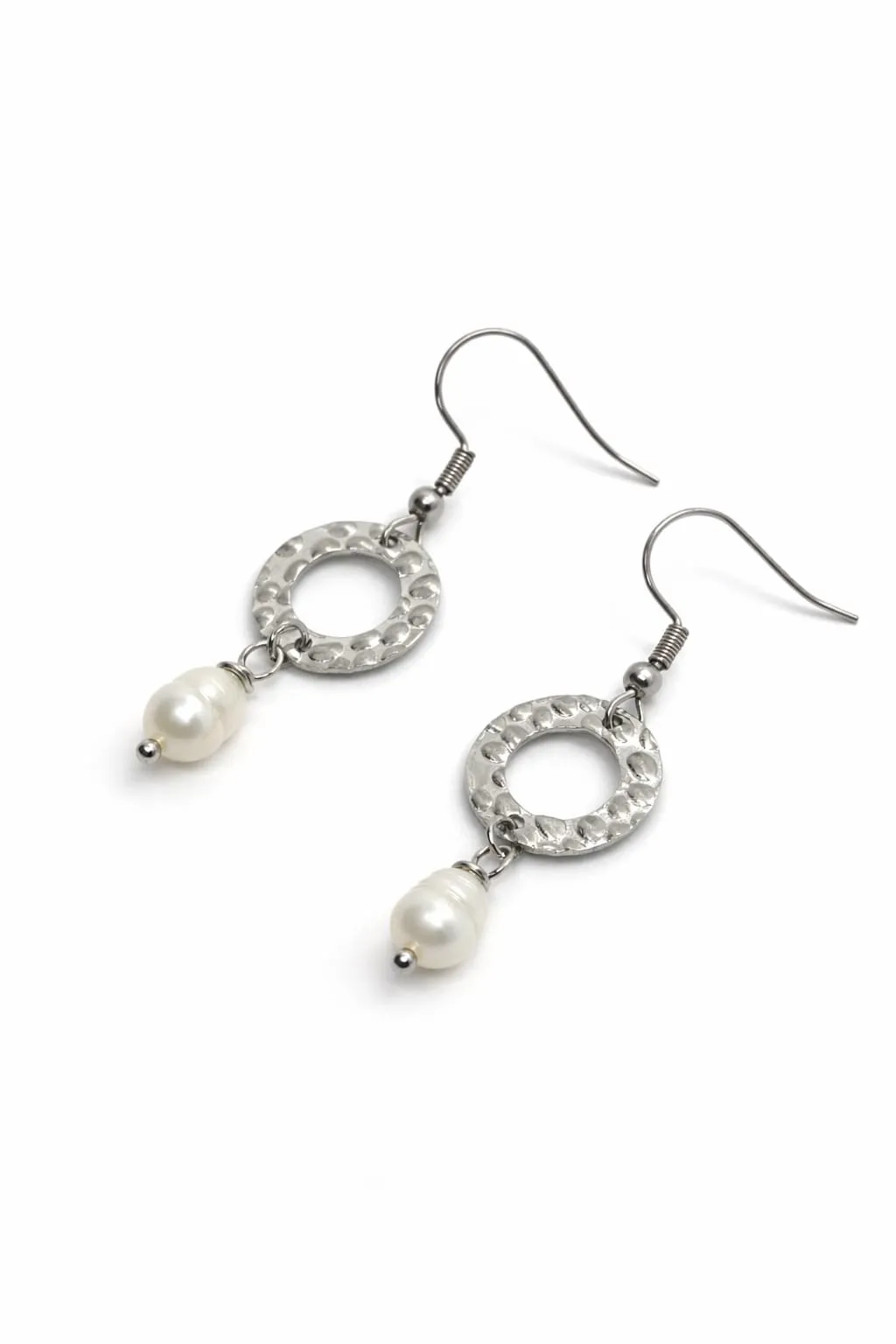 עגילי פנינית עשויים סטיינלס סטיל ופנינה תרבותית – צבע כסף